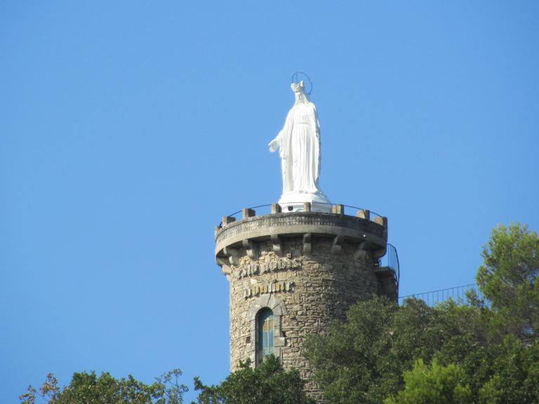 la Vierge aux bras ouverts (du type de la Médaille miraculeuse ou de la rue du Bac, largement diffusé après 1832), qui nous rappelle la statue de l'Immaculée Conception.